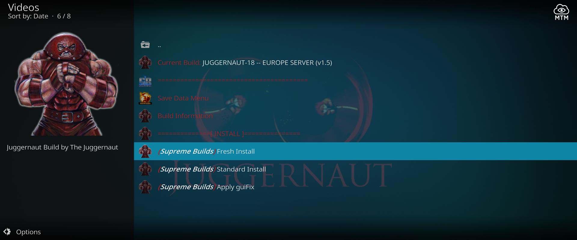 - Lastly, use the Supreme Builds Wizard to install the Juggernaut Build and gain access to its add-ons.